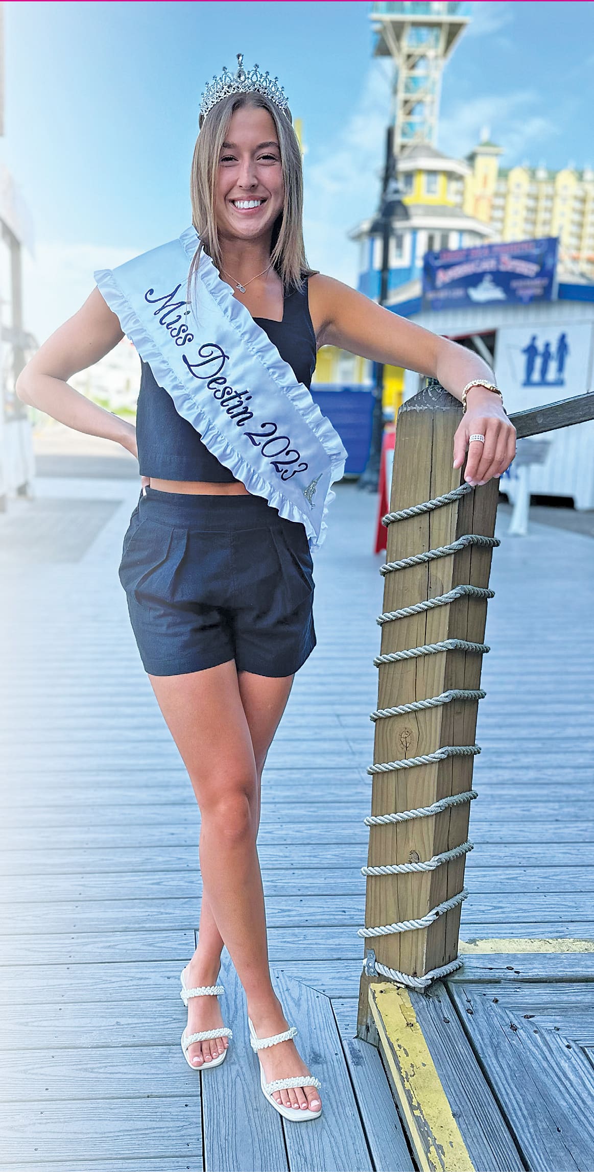 I was born and raised in Destin, and I am a member of the first graduating class of Destin High School, the Class of 2023. Being in the first graduating class marks a moment in time that can’t be repeated or replaced. As the first Miss Destin from Destin High School, I hope future graduates will represent the school by getting involved in our amazing community. As Miss Destin, I hope to be an excellent Christian role model to others, while interacting with the public in a positive manner by supporting Destin’s history and traditions.