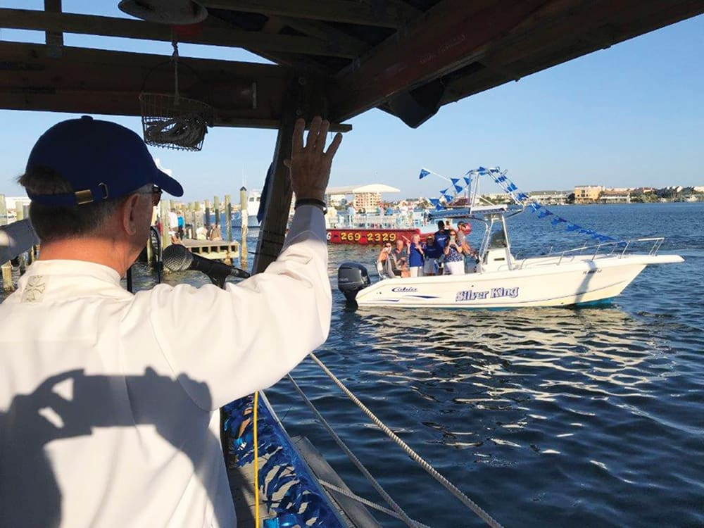 Captain Mike has been involved in the annual Blessing of the Fleet since he moved to the area years ago and was asked to pray, along with other clergy, during the ceremony. “These pastors make up the ‘Church of Destin’ formed a few years ago as a symbol of unity, crossing denominational barriers,” says Captain Mike. “Where there is unity, there is blessing,” he says.”