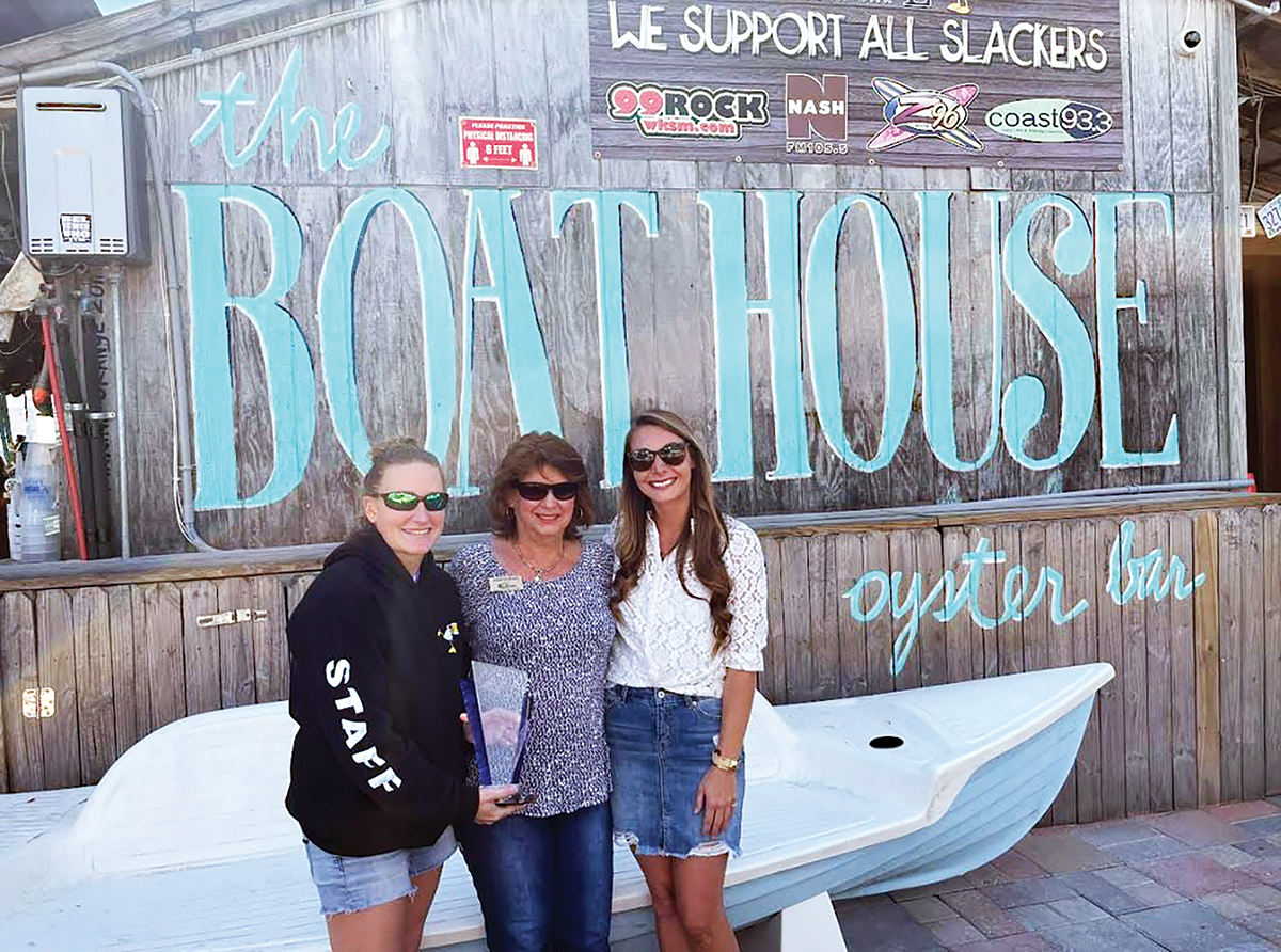 We are honored to announce the next winner of the “Gabby Bruce You Make a Difference” award. The award goes to The Boathouse Oyster Bar in Destin. The award was presented by Debbie Bruce, President of A2Z, on November 10th to the owner, Missy and Amber, the Marketing Coordinator. The Boathouse gives back to the community in many ways. Some of the events they hold are Locals on the Harbor benefiting the Emerald Coast Foundation and Children in Crisis. In November they had their Slacker event with a Food Drive and Angel Tree which benefits Road Dogg Rescue and Food for Thought.