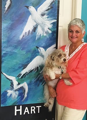 Becky Hart has resided in the Destin area since the 60s when her father bought ten acres on Mack Bayou. From an early age, Becky was encouraged to create art by both her mother and grandmother. She graduated from Mississippi State with a Bachelor’s Degree in Commercial Art. After six years in the advertising business in Destin, Becky was hired as a graphic artist for CNN in Atlanta. While there, she earned her Master’s Degree in Family Counseling from Georgia State University.