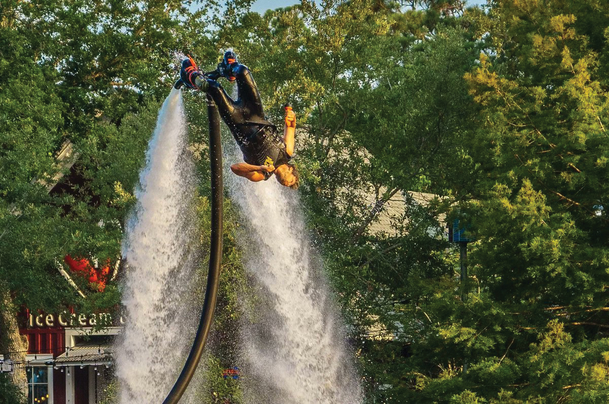 Enjoy shows from fly-board extraordinaire Ben Merrell over the lagoon! Watch as he soars to the sky and makes waves at Baytowne Wharf.