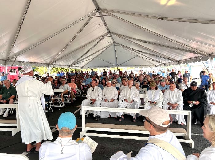 The evening begins at 4 p.m. with a Captains’ Praise and Worship Service held under a large tent overlooking the harbor. Around 5 p.m., clergy will process to the docks to begin blessing the vessels—everything from commercial fishing boats to safety and recreational watercraft. Each participating captain receives a signature blue Blessing of the Fleet flag, a symbol proudly flown to signify protection and faith for the year ahead. In 2025 alone, more than 130 vessels took part in the ceremony.