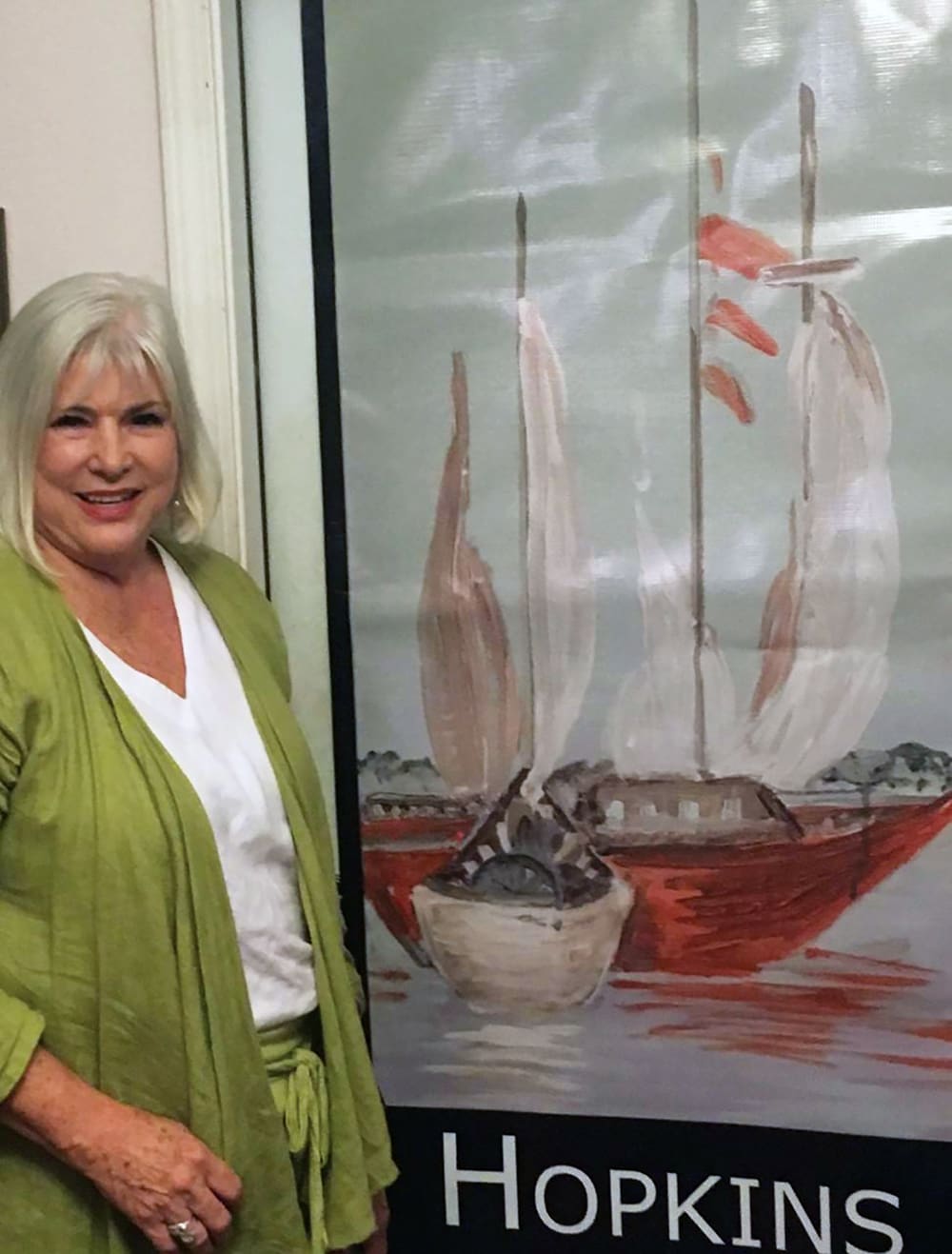 For the Banner Project to work, each artist creates and donates an original work of art. They use whatever style and medium they prefer – oil, acrylics, watercolor, etc. – just as long as it works on a banner. Ron says the banner artwork seems to cover all the different styles from funky (Red Bird Art) to impressionistic (Libbo Morgan). The artwork is then photographed and the digital images sent to CJ Signs in Ft. Walton for printing. Once printed, they’re available for viewing in Destin’s Flutterby Antiques until the city installs them on the poles along Main St.