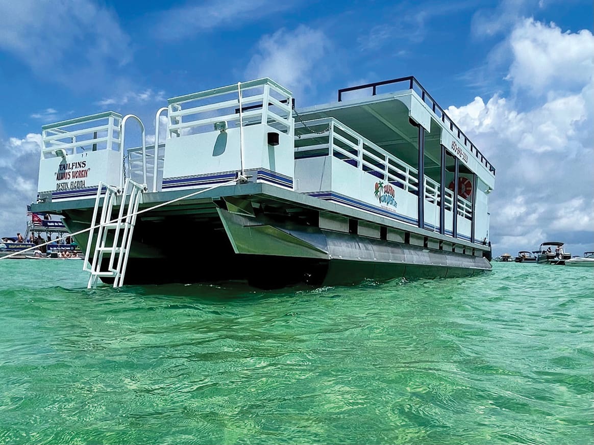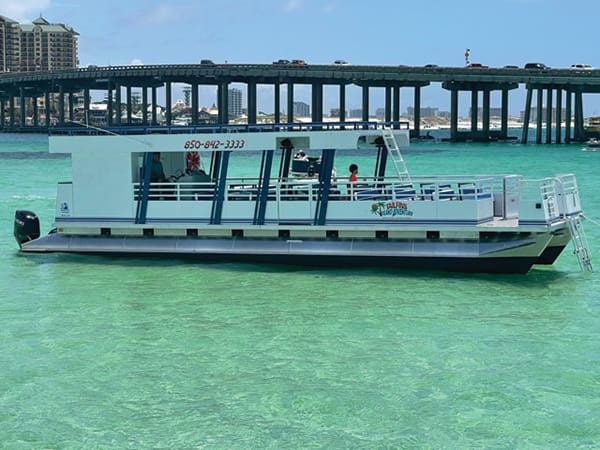 Tailfins 4-Hour Tour departs Tailfins docks daily at 9:30 a.m. and 2 p.m. You’ll enjoy a tour of our beautiful Destin Harbor, a Dolphin cruise and a Crab Island excursion for the finale. Special drink packages are available dockside for guests to purchase for their adventure.