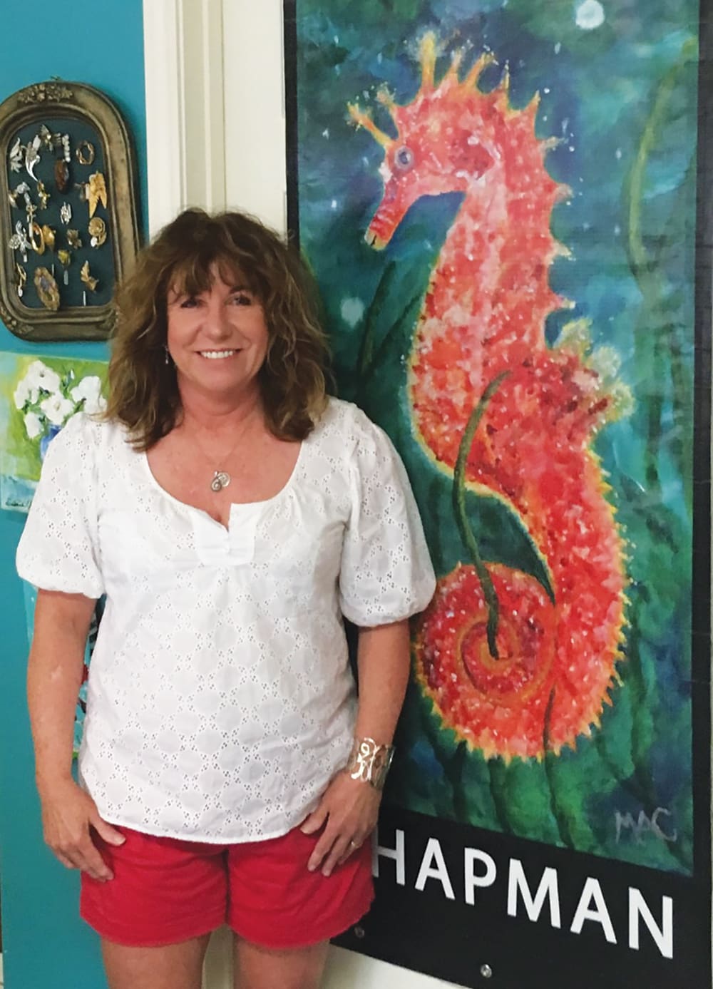 Baltimore native Marie Chapman moved to Shalimar with her husband about three years ago. She has always loved art and while in high school was introduced to a variety of art mediums. After a many-year hiatus, she began painting again four years ago. Now that she is retired, Marie stays busy painting, working with clay, and participating with friends in The Arts and Design Society (ADSO) in Fort Walton Beach.