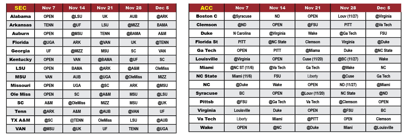 Football Schedule November 2020