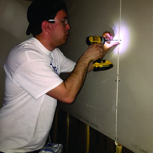 During the trip, SIUE students installed all exterior vinyl siding and interior sheetrock at Home 49, located at 98 E. Tulip Avenue. At Home 50, located at 137 Michigan Lane, Penn State students “roughed in” the house. Beginning with a concrete slab, the students framed the house with the guidance and instruction by Steve Dixon of Dixon Kazek Morrison Custom Homes. Additionally, they put up walls, trusses, and the roof; installed windows, tar paper on the roof and Tyvek on walls – and passed all inspections throughout the week.