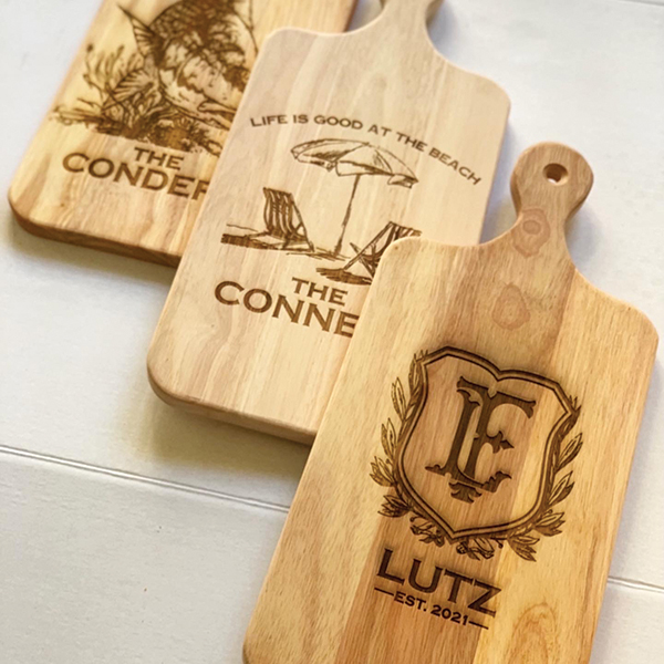 Looking for a great couples’ gift or corporate gift idea? What better way to say thank you to your best friends and/or top clients for their continued support and business than with a beautiful, personalized, hand-crafted gift from Frill Seekers Gifts in Destin. Frill Seekers wooden charcuterie boards are manufactured out of premium wood, are food safe and are made in the USA. Add the couple’s last name, favorite beach, team or your company logo, branding or text for added personalization (discounted pricing on bulk orders, too). “Our charcuterie boards make amazing housewarming gifts and brides absolutely love getting a board with their new name or monogram on it,” says Heidi LoCicero, founder. You can even pair the board with a nice bottle of wine, meats and cheeses, nuts or candies for the perfect present. Add their name or a company logo (if you are a realtor or sales representative, for example). Or have Frill Seekers engrave a family recipe on the board.