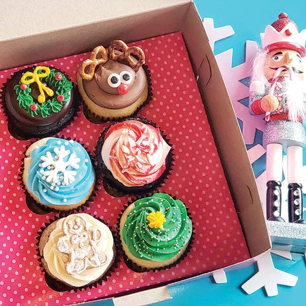 You can experience a Christmas cupcake heaven on earth with fanciful, flavorful frostings and a variety of cupcake flavors to suit every taste! Let Smallcakes do your baking this holiday season. ALL cakes can be customized in all flavors and varieties—cupcakes, cookie cakes, “mini” or “mighty” cakes, brownies, cupcakes-in-a-jar, birthday and wedding cake heaven on earth! For your special events, desserts and “wowing” family and friends, make it personal with custom edible logos and images on top. The current buzz is all about Kentucky Bourbon—brown sugar bourbon cake, that is, with crushed pecans and chocolate chips topped with brown sugar cream cheese, crushed pecans, chocolate chips and caramel chocolate drizzle! There’s 18 signature flavors and gluten free cupcakes, too. Order gourmet cupcakes, custom cakes and tempting treats as seen on the Food Network and Cupcake Wars. You get them baked fresh daily. Perfect for holiday parties, office or family gatherings, football tailgating, Hanukkah and Christmas events! But don’t hesitate to get one during the party before they’re gone! Call ahead for pre-orders or curbside pickup!