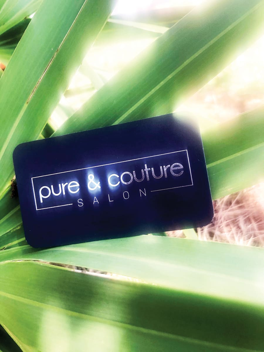 Pure & Couture Gift CardWith all the shopping and planning, taking a little time out to stay rejuvenated goes a long way in getting things done! Pure & Couture owner Adrianne Bracket and her talented team of experts will make sure you’re at your best throughout December and ready for the new year! Farrin, Pure & Couture’s newest esthetician, will make sure you feel your best with skin care, make up and waxing. Farrin is offering 50% off of her facial services and 20% off waxing menu this month! Purchase Gift Cards to give all the holiday vibes in addition to hair care flair — a bit of color, styling, extensions, makeup, a pampering facial or even a therapeutic massage and anyone on your list can experience a mighty makeover. Stuff your stockings with Pure & Couture’s travel bars, candles and essential styling products all with custom gift wrapping! Adrianne’s talented team of professionals hold certifications in oncology, pregnancy, sports and medical massage, with a mission to provide quality care, resolve specific conditions and assist in improving quality of life for men and women of all ages. Offering curbside pick-ups and online ordering, too!