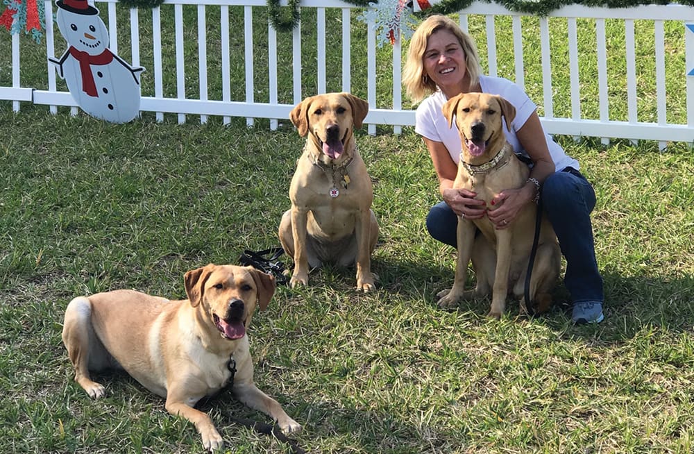 Steve’s passion is to always improve and that launched his new charity PLF right here on the Emerald Coast. Twenty-two veterans take their own lives every day because of depression and hopelessness, and there just aren’t enough dogs available to help combat this issue. This statistic hits home, as we locals live among the greatest population of veterans in the U.S. Steve and his wife Wendy, along with their children, agreed they could do more to help. They know the needs of veterans are far greater than any available solution, as they are looking for hope. Their family vision soon developed in ways they only dreamed about. They were going to not only assist veterans, but also children with epilepsy and autism. Many of these traits are similar to post traumatic stress (PTSD) and traumatic brain Injury.
