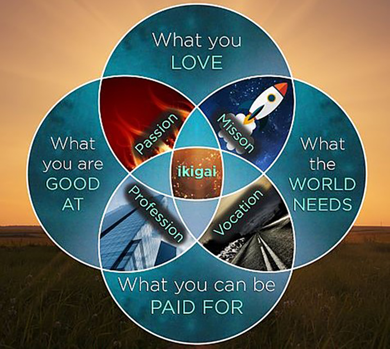 A study by Harvard some years ago found that an area with one of the highest life expectancies in the world doesn’t even have a word in their language for retirement. The study looked at two different groups with the same physical characteristics and lifestyle habits. Participants who reported that they found their life purpose at the beginning of the study had higher levels of self-rated health, lower levels of stress, and a significantly longer lifespan than those without the ikigai.