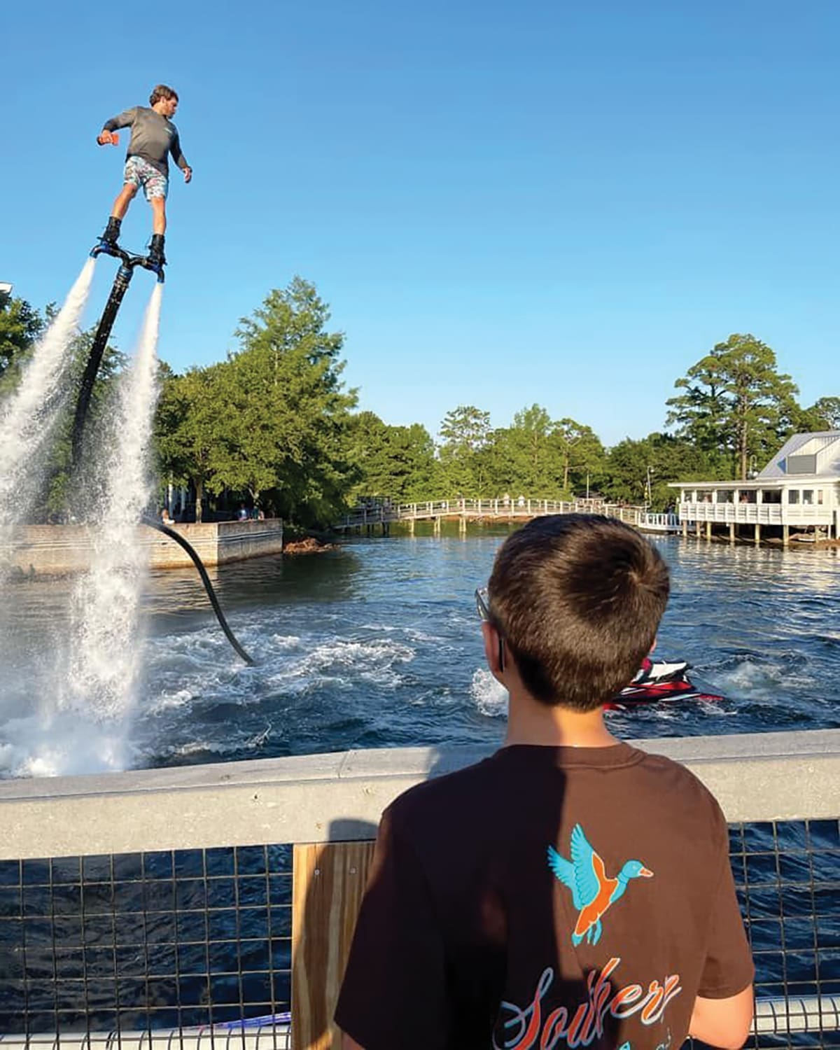 Enjoy shows from fly-board extraordinaire Ben Merrell over the lagoon! Watch as he soars to the sky and makes waves at Baytowne Wharf.