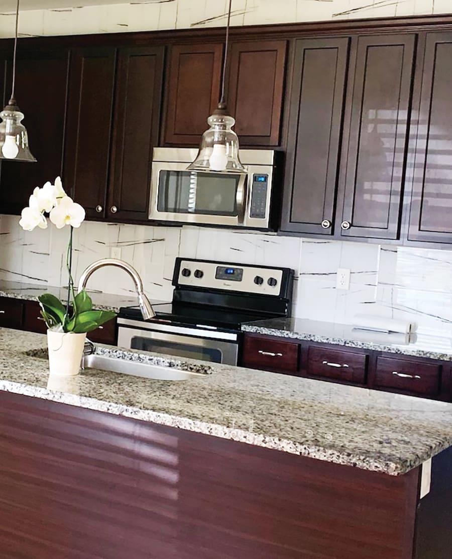 “When you come in, we basically schedule a consultation to come to your house and measure for kitchen and bar back splashes, bathroom wall and shower tile, patio flooring, pool tile, household flooring, and even custom rugs and runners of any size. We’ll put together a formal estimate, then set up a date for installers to come and we will oversee the process from beginning to end.”