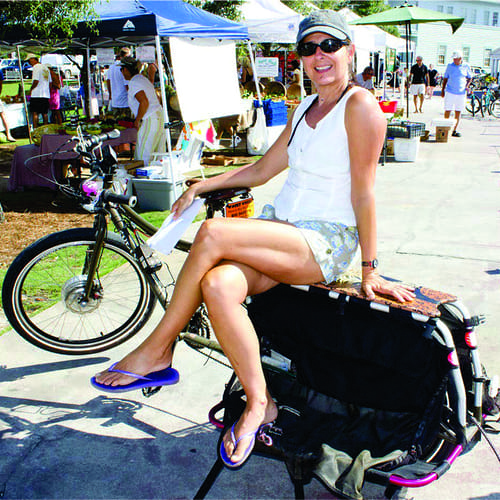 Celeste is making her mark on South Walton life by wearing another hat, that of local conservationist and environmental activist. She and her husband, local musician Ted Cobena, met while pursuing degrees in geology at University of Southwestern Louisiana back in the 80’s. They began their careers in the oil industry as geologists but soon discovered this was not the path for them. The natural beauty and pristine beaches led the Cobenas to make South Walton their home in 1991. Ever since, Celeste and Ted have been environmental advocates letting their voices be heard on issues like protecting the state parks and forest lands from development and keeping our beaches clean and accessible. The pedaling part of her business ties into something she is proud of: instigating the off-road bicycle trails in the state parks and forest when much of the conservation land was purchased in 1992. She used her mapping skill learned as a geologist to piece together topographic maps and along with aerial photos map out the interconnected greenway network of trails in the forest and parks.