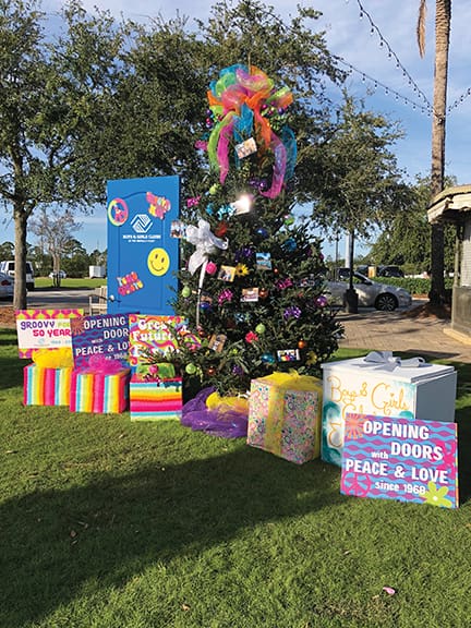 The Boys & Girls Club of the Emerald Coast came in second place with their groovy tree that celebrates 50 years of peace and love. Established in 1968, the Boys & Girls Club of the Emerald Coast strives to enable all young people to reach their full potential as productive, caring, and responsible citizens. Currently, the organization serves over 3,000 kids in eight clubs across Escambia, Okaloosa, and Walton counties.
