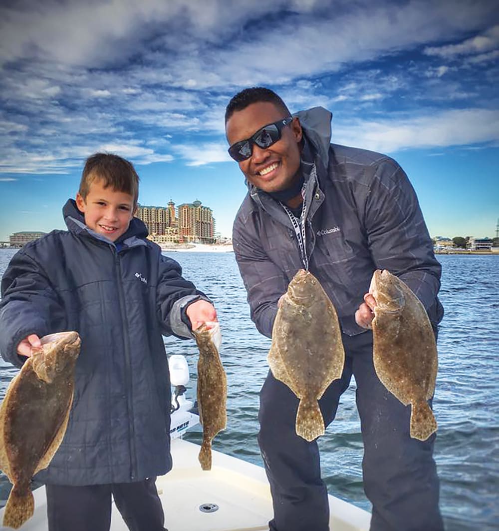 “Flounder and Sheepshead are two popular winter/spring fish that anglers will be targeting in this area,” says Captain Lionel James of Lion’s Tale Adventures Fishing Charter. “Flounder will start to school up in October as they prepare to migrate during winter with the cooler water,” he says, “typically heading out into the nearshore gulf areas.” The move allows them to settle on natural and artificial reefs to spawn at this time.