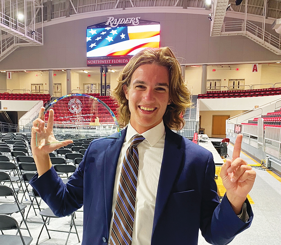 Congratulations to local student Olin Wolfgram who made history recently at the Anne T. Mitchell awards held at Northwest Florida State College! He was both the Fort Walton Beach High School (FWBHS) student with the highest GPA ever recorded and the No. 1 student scholar in Okaloosa County earning him the prestigious Peggy Gorday Bruner Award for the class of 2022. Okaloosa County is ranked third school district in the state. “It’s really stunning and the fulfillment of Olin’s singular goal,” said his mother, Zandra Wolfgram. “He said he wanted to be valedictorian when he started as a freshman. He not only did it, but made history at FWBHS with a 4.82 GPA.”