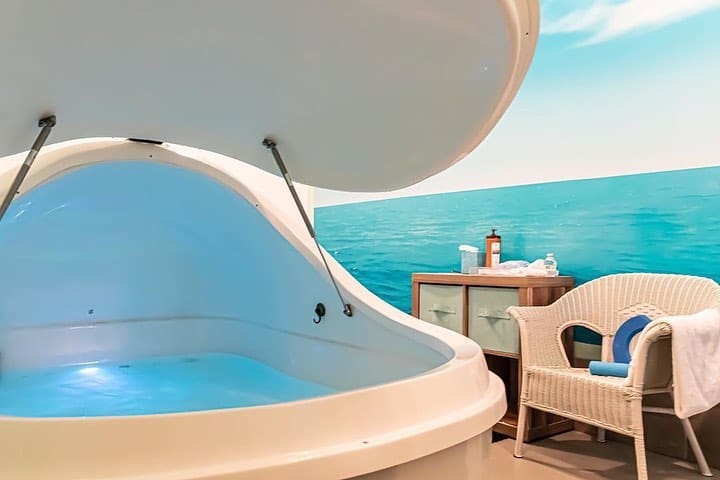 Even though it’s a newer concept in our area, float therapy has actually been around since the 1950’s, but stayed relatively away from mainstream use due to lack of knowledge of the therapy and the benefits it provides outside of modern medicine. You enter the tank either nude or in a swimsuit, wearing earplugs. You then lie back and float. Epsom salts are added to make the water as dense as the Dead Sea, making it easy to remain buoyant.