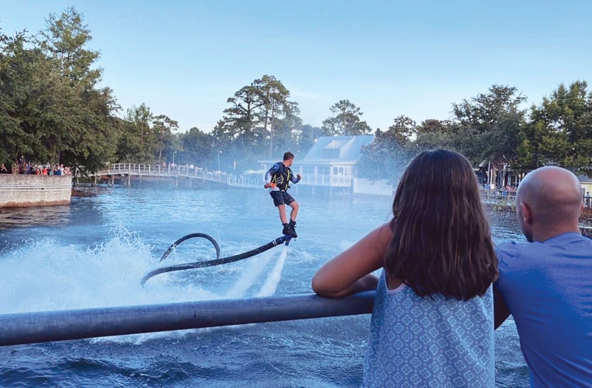 Enjoy shows from fly-board extraordinaire Ben Merrell over the lagoon! Watch as he soars to the sky and makes waves at Baytowne Wharf.