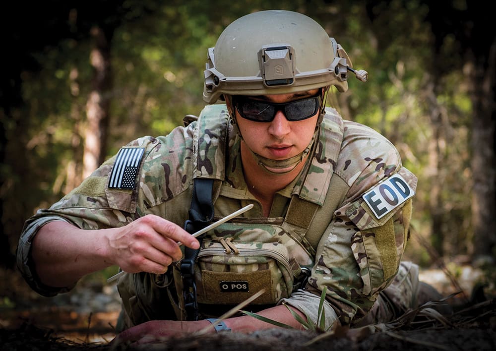 EOD Warriors are the men and women who graduate as Explosive Ordnance Disposal (EOD) technicians through all branches of the military from the Navy’s EOD School at Eglin Air Force Base. EOD technicians are the ones responsible for disarming, rendering safe and disposing of bombs. Highly-trained, they serve in the Army, Marines, Navy and Air Force. As one of the most dangerous occupations in the military, EOD professionals willingly place themselves in harms way, supporting the most complex special operations missions, to protect our lives and property.