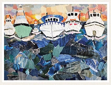That same year, Rebecca participated as a vendor for the Destin Seafood Festival. Her art was so well received at the festival that she knew she had to enter at least one poster contest. With 2018 being the 40th anniversary for the Destin Seafood Festival, this contest was even more special for Rebecca. After working for quite some time on a piece similar to her winning artwork, Rebecca threw in the towel the night before the deadline. However, she knew she couldn’t just give up that easily after spending hours and hours on a piece. So that night, she got out of bed and went back to work creating a piece that captured all the different types of boats found in the Destin harbor while pulling her inspiration for each one from her own personal connections. The result was the winning piece, “The Morning Run,” that illustrates the Destin Fishing Fleet heading into the Gulf each morning.
