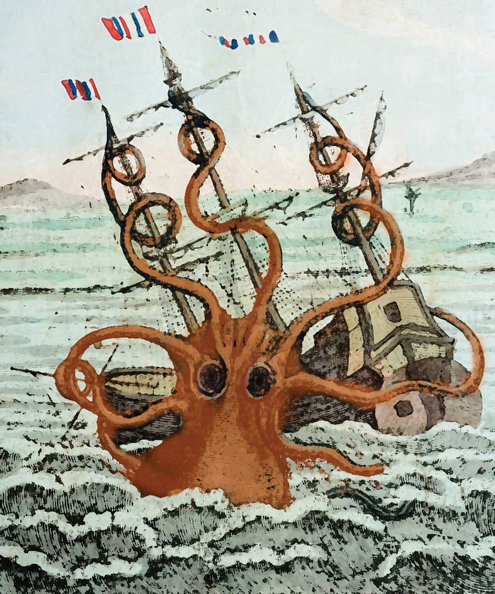 Our story begins way back in 1835. A large fishing vessel out of New London, Connecticut had lost its way in rough seas by the Bermuda Triangle. The ship was caught in a mighty storm. It was a brave and mighty crew who had seen many days at sea and they were weary when first they caught sight of the massive tentacle arms of an unknown creature from the depths. The tentacles quickly wrapped around the giant ship and crushed it like it was a tin can. The great beast devoured most of the crew and when it had its fill, it headed west and made its way into the Gulf of Mexico. There weren’t many survivors to talk about that, but there was Leonard. He was able to make his way to shore floating on a handmade raft of scrap wood. He became quite the fisherman – set up camp right in front of Crab Island. His last name was, of course, Destin.