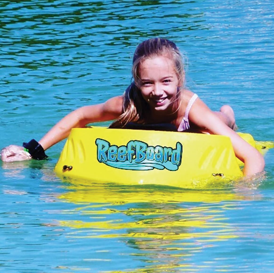 The ReefBoard provides families a unique view of the various sea life in our clear gulf waters. Comparable to snorkeling, only without the hassle of breathing through a tube, swimming fatigue or leaking masks, the ReefBoard is solidly constructed similar to a kayak but instead of sitting “in” it, you lay flat on top of it and place your head into a neoprene padded face rest which doubles as a sun-blocker and allows for the best view into the water below.