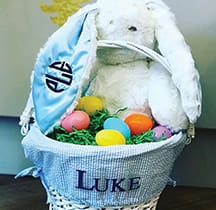 Make your Easter and your family egg hunt “eggs-stra” special this year with one of Frill Seeker’s cute, personalized baskets—perfect for toddlers, teens and even adults. Kids will be “frilled” to find their names featured on their very own personalized baskets or on the ear of our plush stuffed bunny rabbits! Most parents and grandparents take photographs before Easter Sunday services and these personalized products will add a unique touch to each spring outfit.