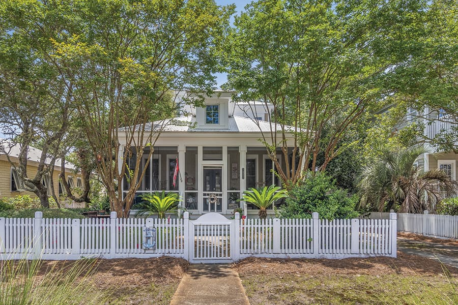This charming 2-story, 3-bedroom, 3-bathroom home is conveniently located near the community pool and is only a short stroll to your deeded beach access. You will love the serene environment and lush treescape, giving it the quaint Florida feel. This home would be an excellent primary residence, second home or vacation rental. Its quaint coastal living architecture defines the relaxed culture of the area. The white picket fence frames the house; a large, screened porch welcomes you to the front door; the lofty, 11-ft. ceilings and beautifully cased Pella windows provide natural light. A combined living and dining area flows into the gourmet kitchen with stainless steel appliances and features marble countertops. The kitchen adjoins a sunroom that exits to the masterfully landscaped backyard with lush tropical plants and mature oak trees. The master bedroom can serve as your private suite with an adjoining jacuzzi tub, separate shower and double vanities. For a private showing of this furnished home or a FaceTime tour of MLS# 924000, call Brian K. LoCicero, REALTOR® at (850) 739-3800 or visit BeOnTheCoast.com.