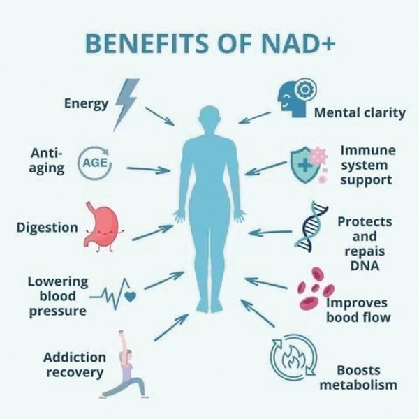 Beyond Anti-Aging – NAD+ also supports brain health, mood enhancement, and cellular resilience, offering a holistic approach to combatting the declines of aging. It’s about enhancing life’s quality, every day.