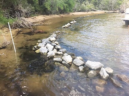 “Reef breakwaters and living shorelines protect cultural and natural resources on Eglin Air Force Base,” explains Alison McDowell, Director of the Choctawhatchee Basin Alliance, “In addition to reducing erosion, the breakwaters provide habitat for fish, oysters, and other native species.”